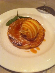 De postre, tomamos un tatin de manzana con helado de vainilla riquísimo, recién hecho, templado y muy suave.