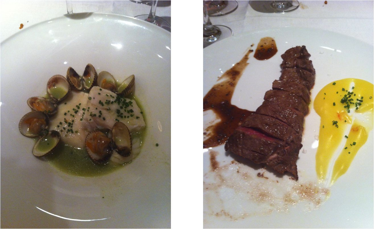 De plato principal, probamos las dos opciones disponibles: merluza en salsa verde con berberechos y lomo de buey. Estaban los dos muy buenos, aunque especialmente destacable la merluza, en su punto y muy fresca.