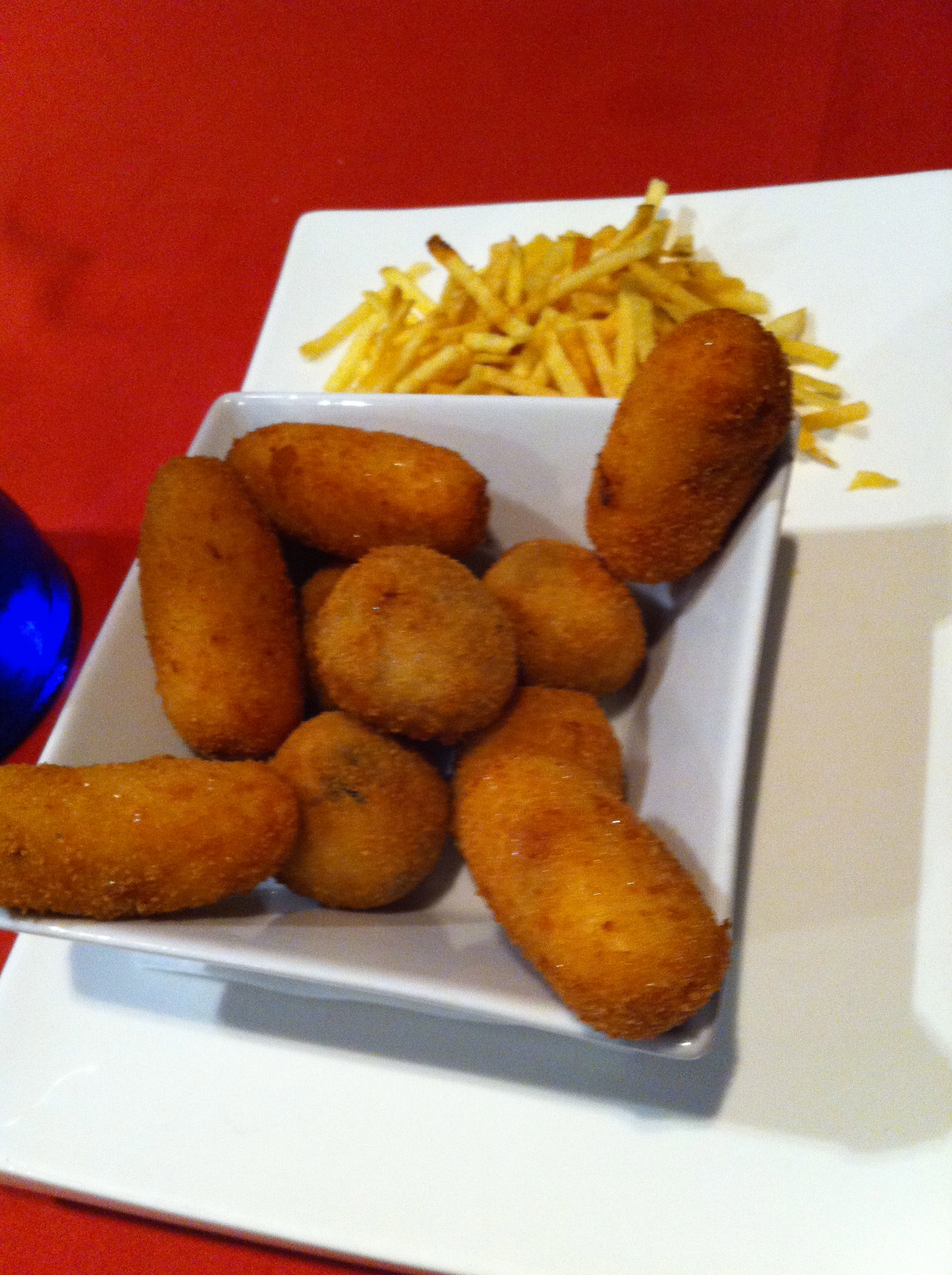 Carta muy amplia, desde platos de carne y pescado hasta arroces y ensaladas. Pedimos de entrante una ración de croquetas variadas, la mitad eran de rabo de toro y la otra mitad de ave y jamón. Estaban muy ricas, con la bechamel bastante conseguida. Vienen unas 8-10 unidades en cada ración.