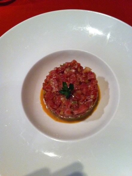 Además, tomamos el tartar de atún con aguacate. Este fue el plato más original que tomamos y por tanto el que más nos sorprendió. Está muy bien, el atún cortadito en trozos pequeños y mezclado con una salsa de aguacate y un poco de mostaza.