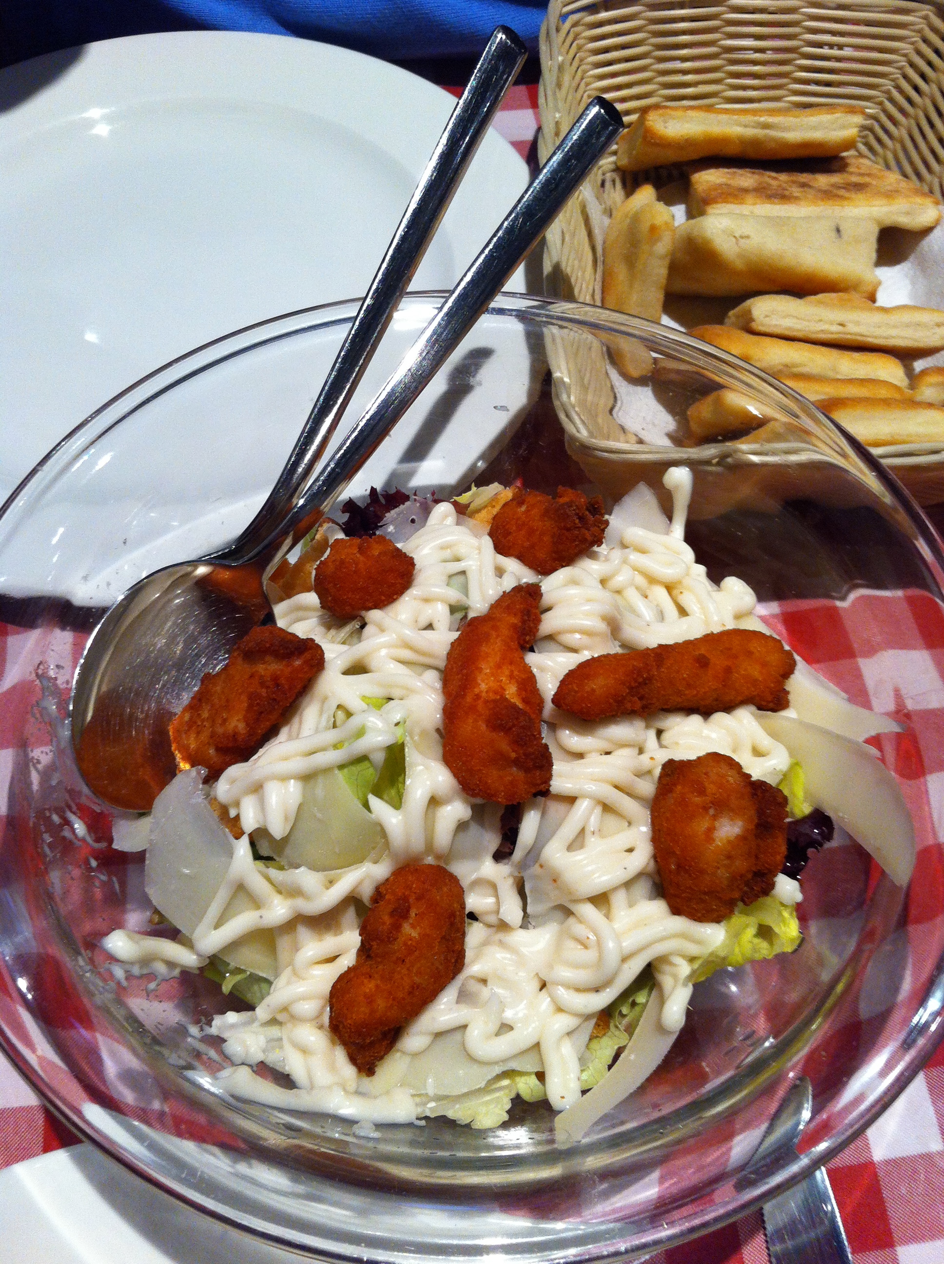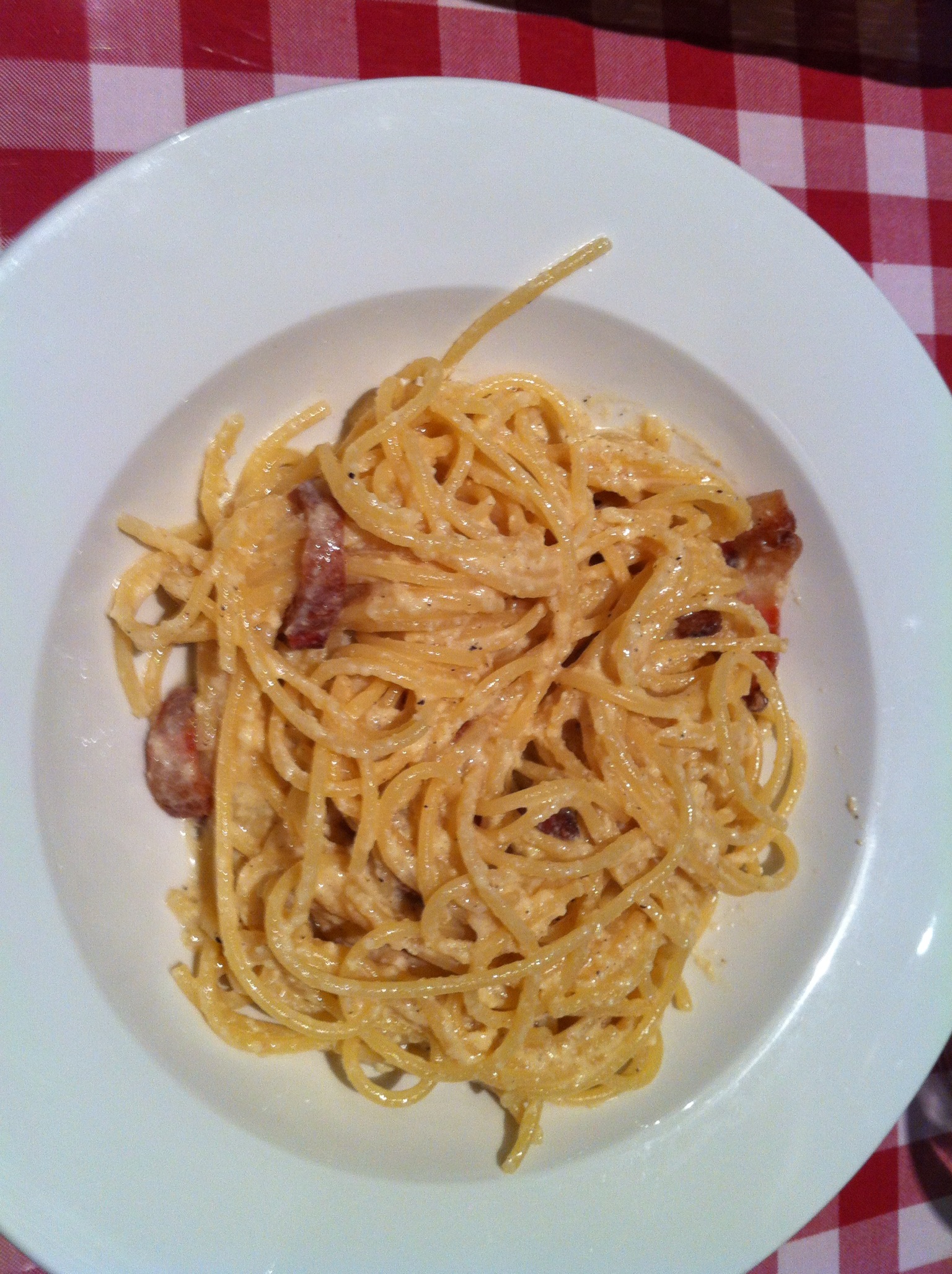 También pedimos los spaghettis carbonara, que la verdad es que dejaban mucho que desear: no son nada recomendables, cosa difícil en un italiano. La salsa era muy pobre, le faltaba huevo y bacon, y la pasta estaba sosa.