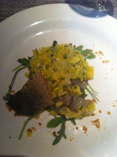 De platos principales, tomamos el tartar de langostinos. De primeras no pensábamos pedir esto porque resulta que tenían dos cartas diferentes que entendemos que deben variar según el día o algo así, y queríamos el tartar de salmón que sólo venía en una de las cartas y luego nos dijeron que no tenían. El de langostinos está rico pero lleva como una salsa transparente que cansa un poco. Es un plato claramente para compartir, porque toda la ración para una sola persona es demasiado.