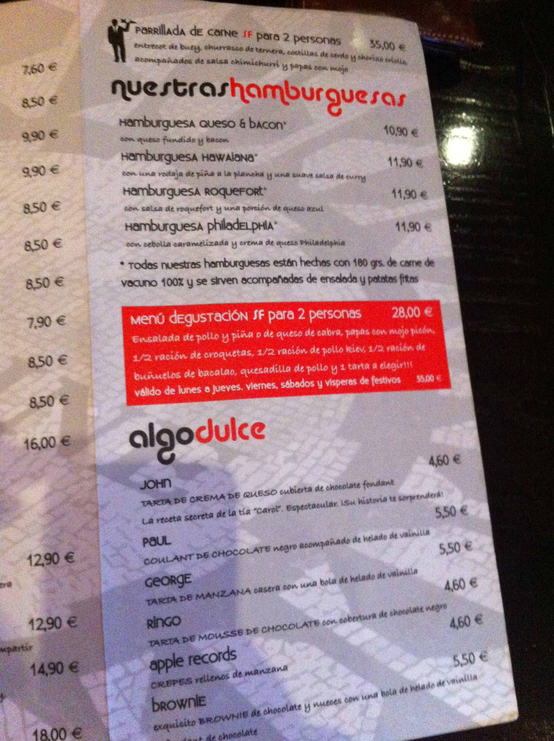 La carta tiene un poco de todo, desde risotto o tortillitas de camarones hasta hamburguesas y entrecot. Todo con unos precios muy atractivos. Ante tal variedad, nosotros optamos por el estilo de comida americano que siempre es más «seguro» en estos sitios, aunque viendo la calidad de las cosas, seguro que todo está bastante bien.