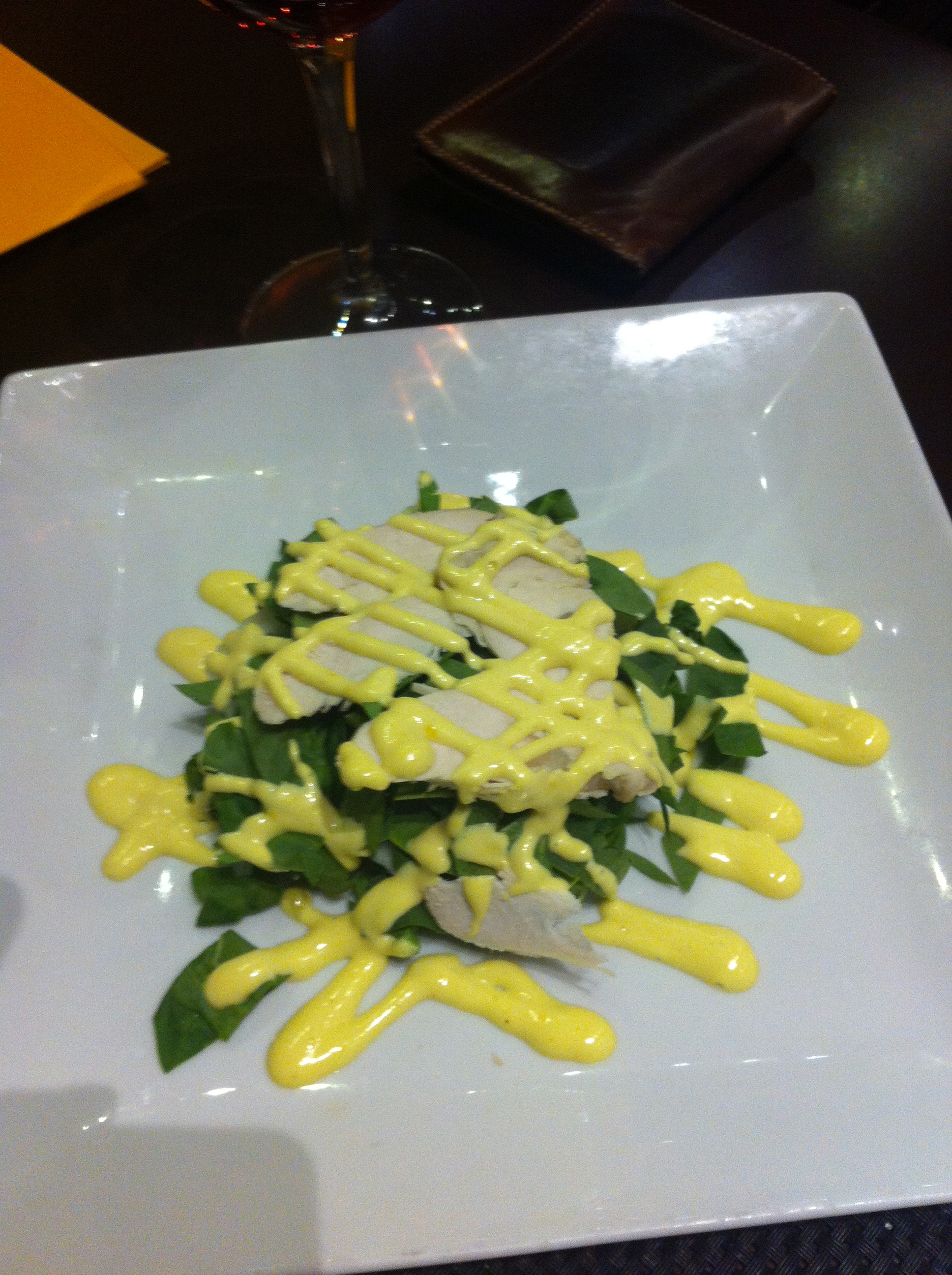 De entrante pedimos una ensalada Filo que lleva espinacas, pollo y un poco de parmesano con una ligera salsa tipo mostaza. Venían poquísimos trozos de pollo por lo que principalmente eran hojas de espinacas con un poco de salsa.