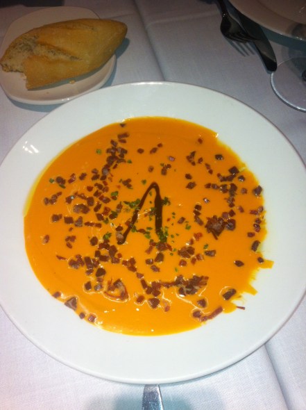 Para empezar, dos raciones de salmorejo. Buenísimo, muy cremoso y en su punto de vinagre. Merece la fama que se ha ganado.