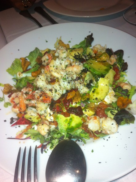 Para seguir, nos trajeron una ensalada de burrata y bogavante. Súper recomendable, muy bien aliñada con mucho sabor y la mezcla de ingredientes que tiene es muy original.