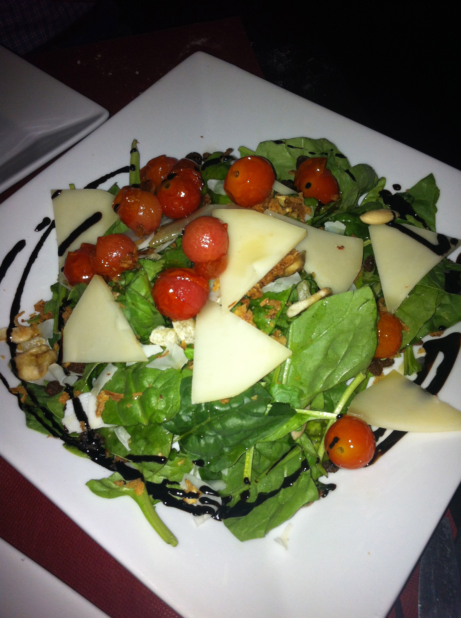 Para empezar pedimos la ensalada de cherry rostizado con queso curado y espinacas (10€). Es normalita, nada destacable y viene muy poco aliñada, cosa que creo que ya he comentado en algún otro post, que me parece casi el punto más importante de cualquier ensalada, saber aliñarla correctamente y al gusto de todos.