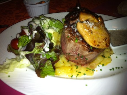 El otro plato principal que pedimos es el que siempre tomamos en El Séptimo: el solomillo con foie (23,90€). La carne es de muy buena calidad y la ración muy abundante, así como el foie. A nosotros nos encanta.