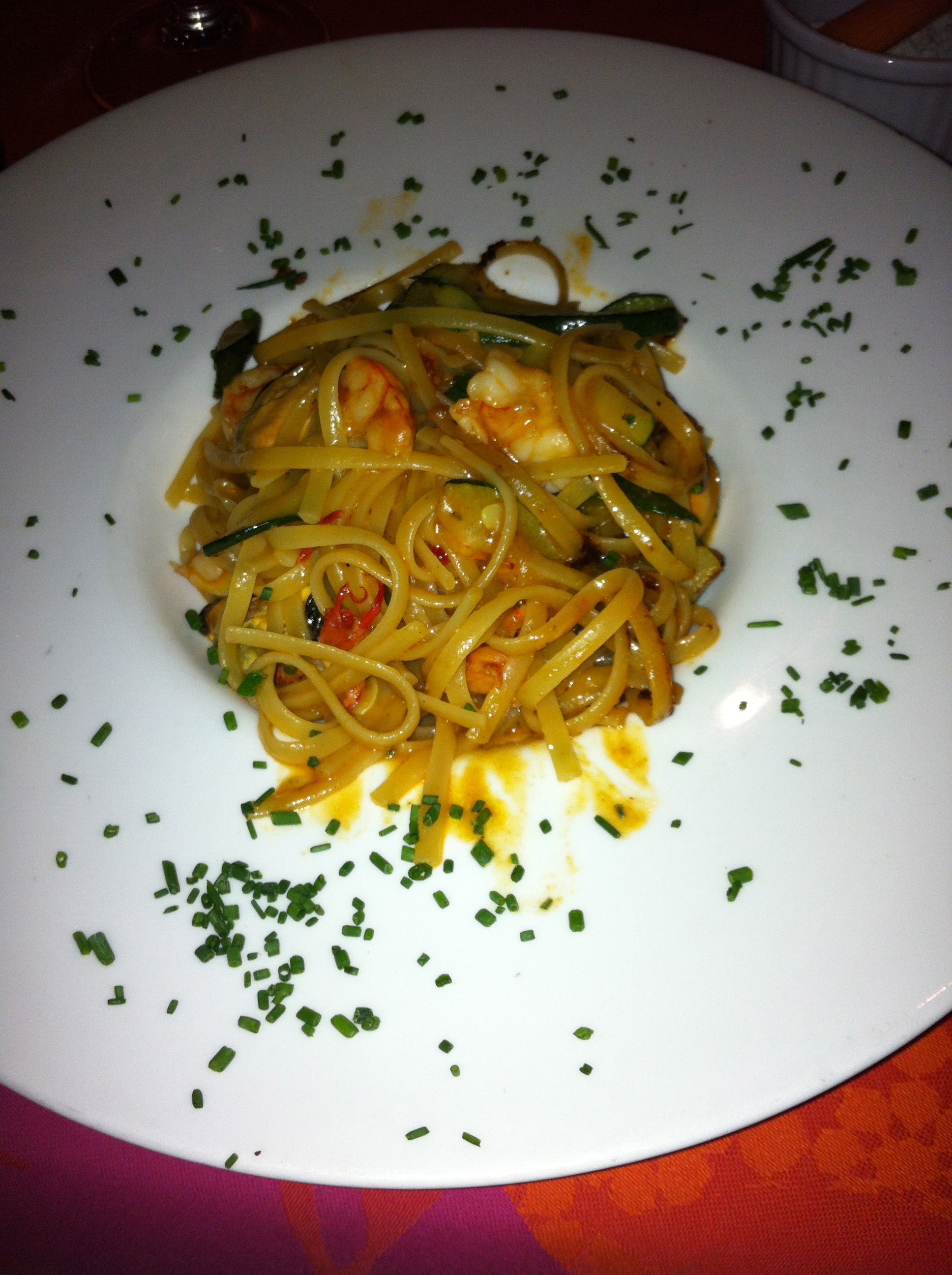 Tomamos los linguine con carabinero (12,90€), muy ricos. Tienen mucha guarnición de carabinero y mucho sabor a mar.