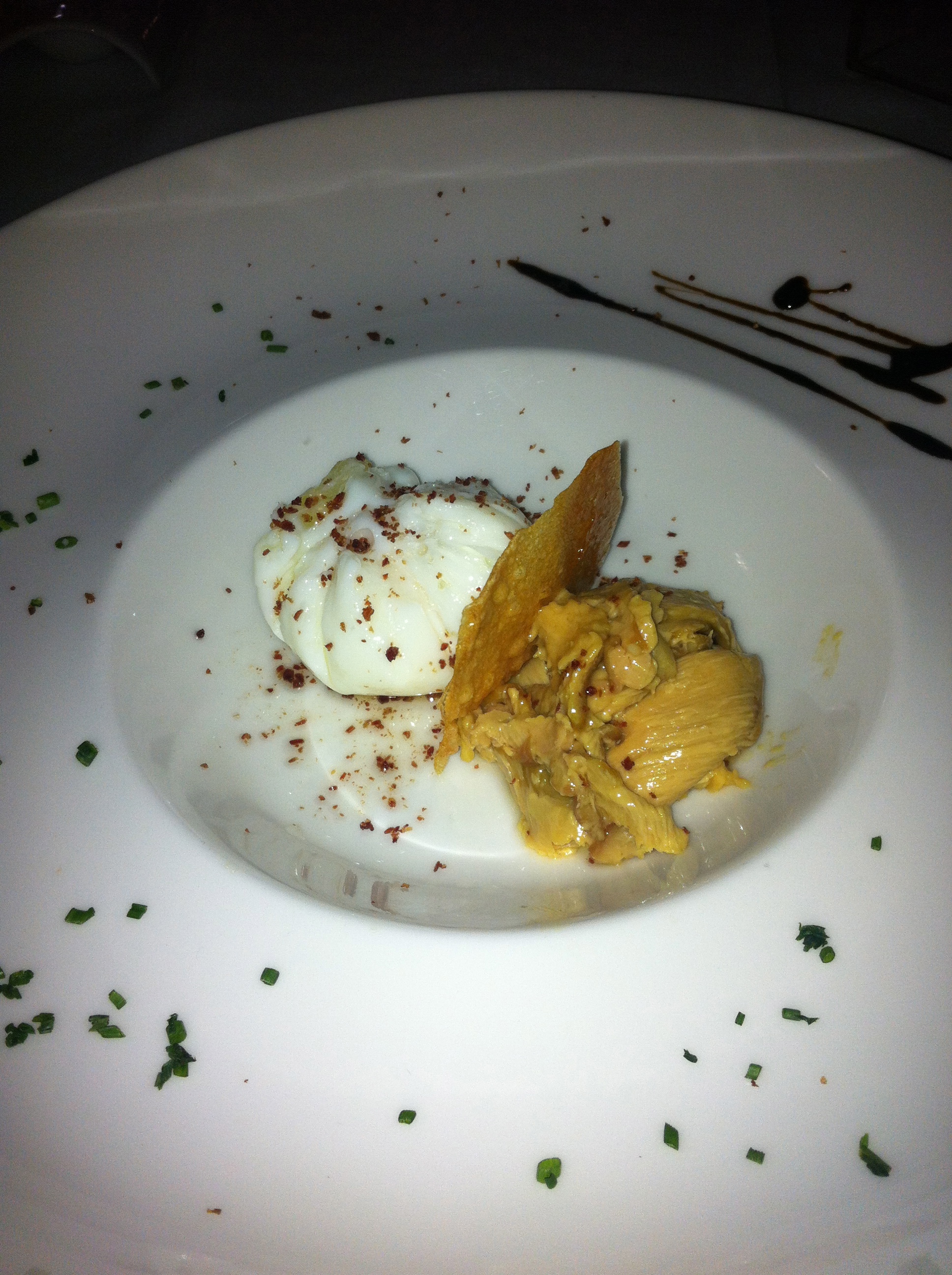 También probamos el huevo trufado con foie (6€), viene como escalfado con el foie al lado y aroma de trufa. Nos gustó mucho.
