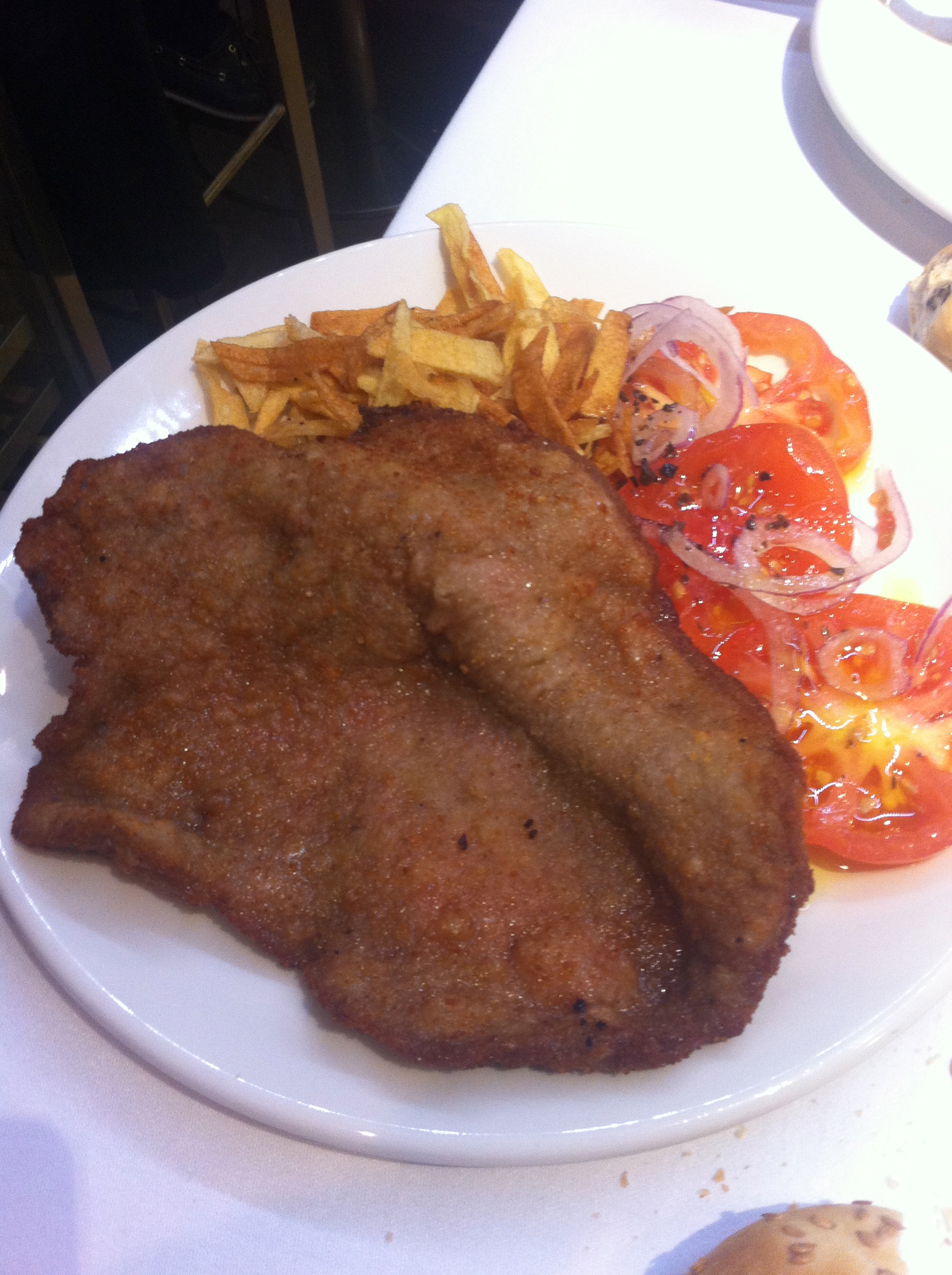 Y por último pedimos la milanesa de la casa (17,30€). Muy normalita y ni comparable al Armando de La Ancha que es finito y súper blando.