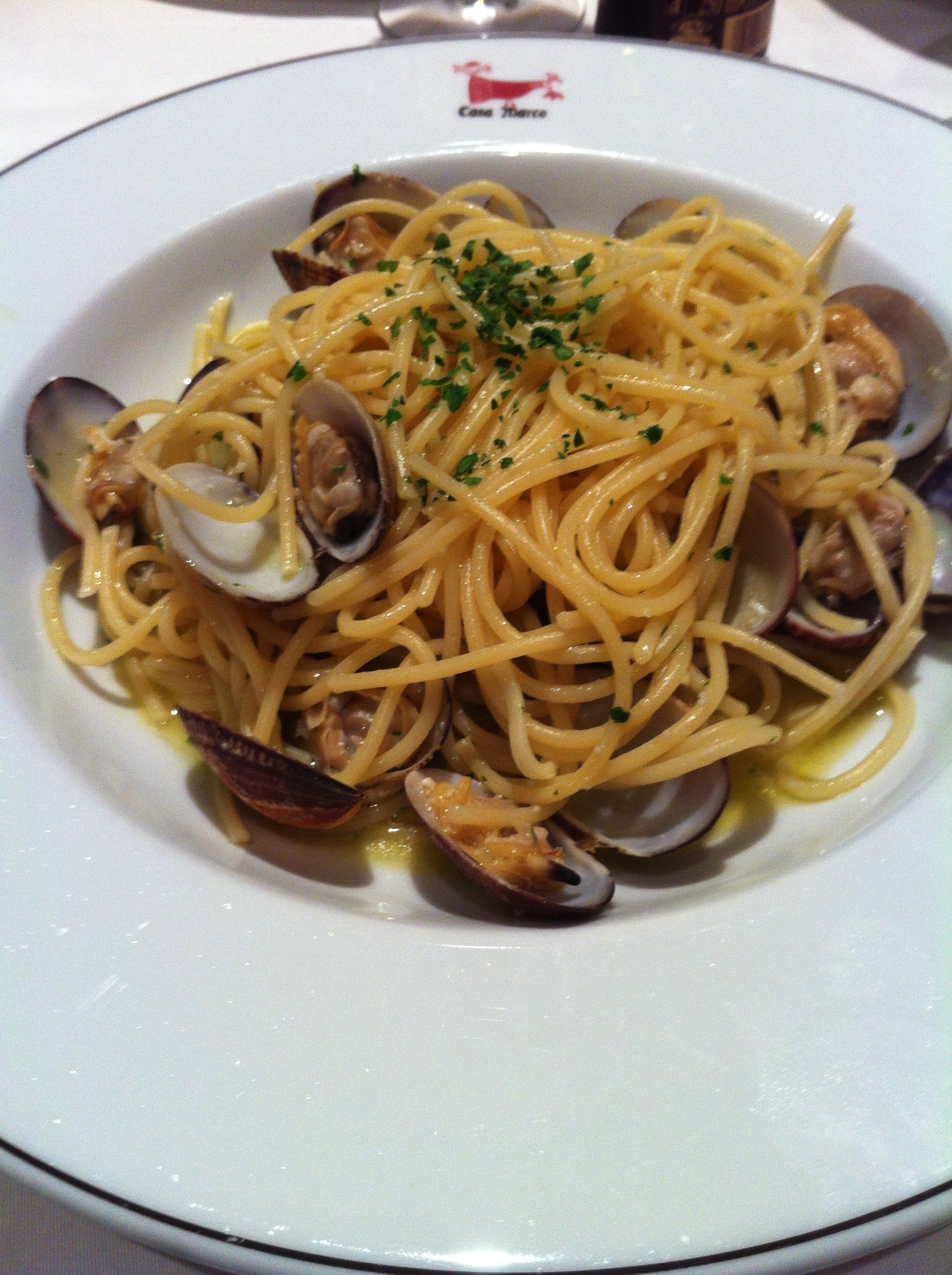 De plato principal pedimos espaguetis con almejas (14€), buenísimos. La pasta al dente y con mucho sabor por las almejas. Muy recomendables.