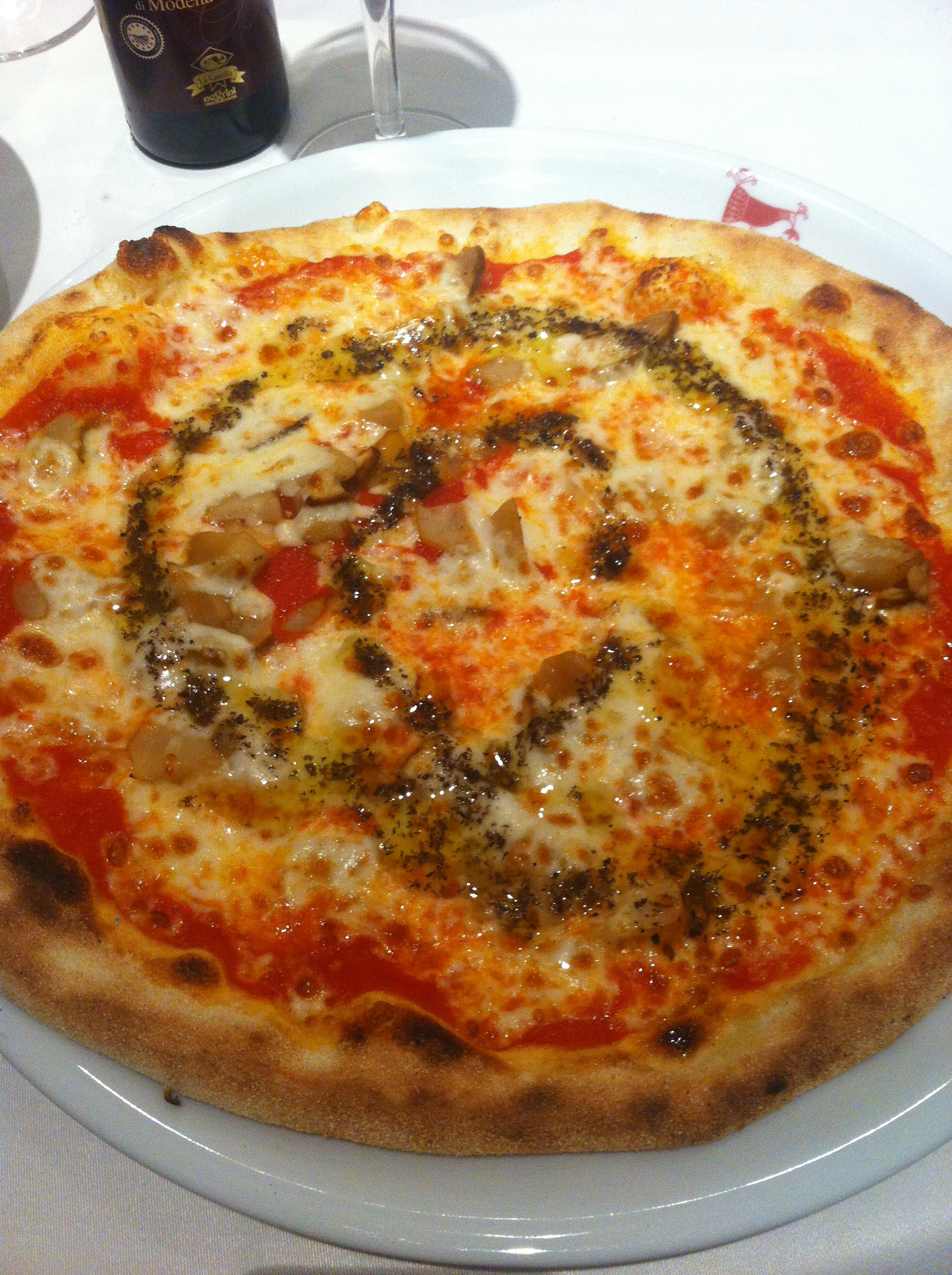 Y también probamos la pizza Casa Marco, de trufa, (15,50€). Buenísima también, súper finita, con muchos ingredientes.