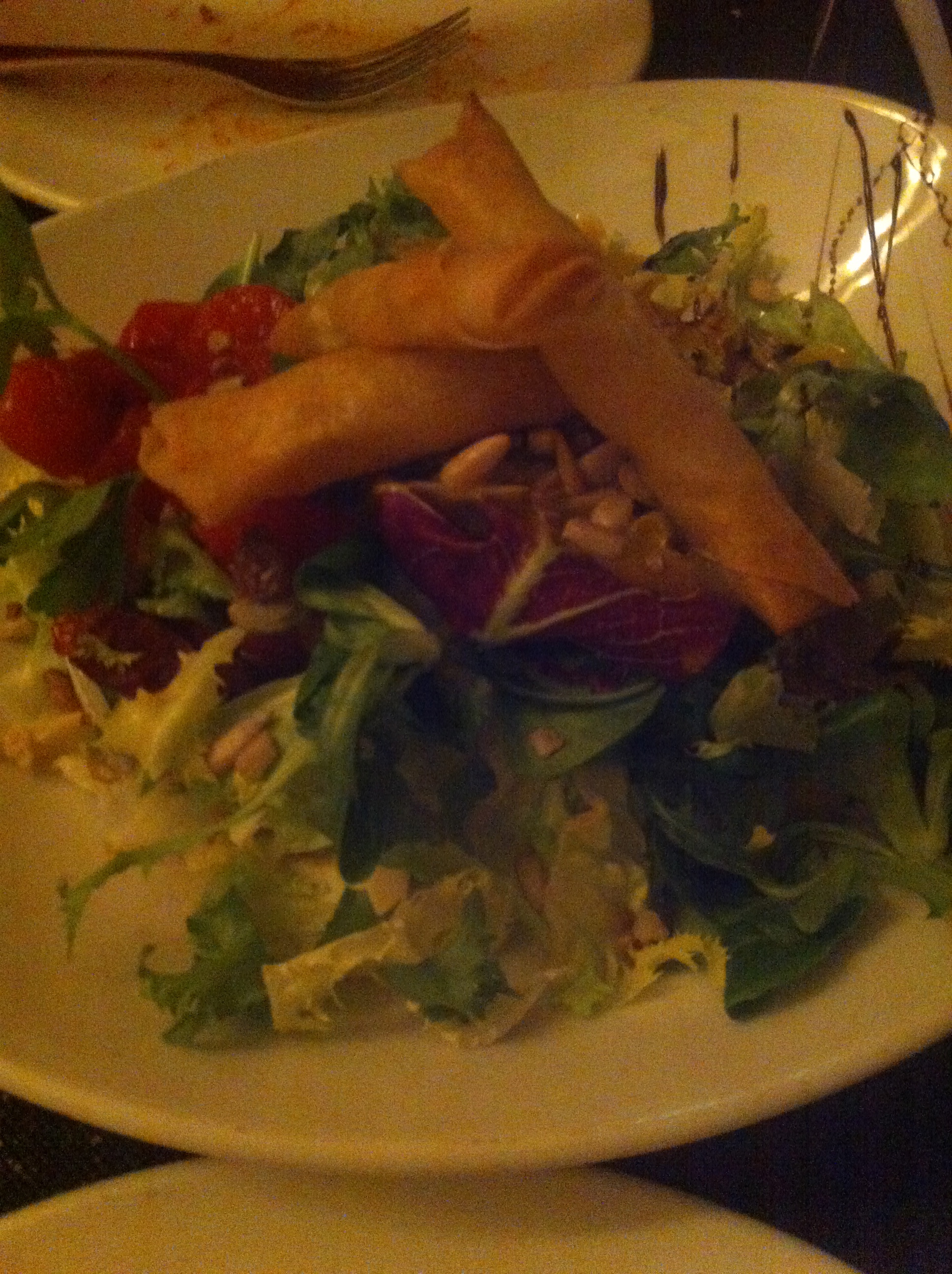 Como entrante también pedimos la ensalada «La pija» (8€), con queso de brie. Normal, tuvimos que pedir un poco más de salsa porque no traía demasiada.