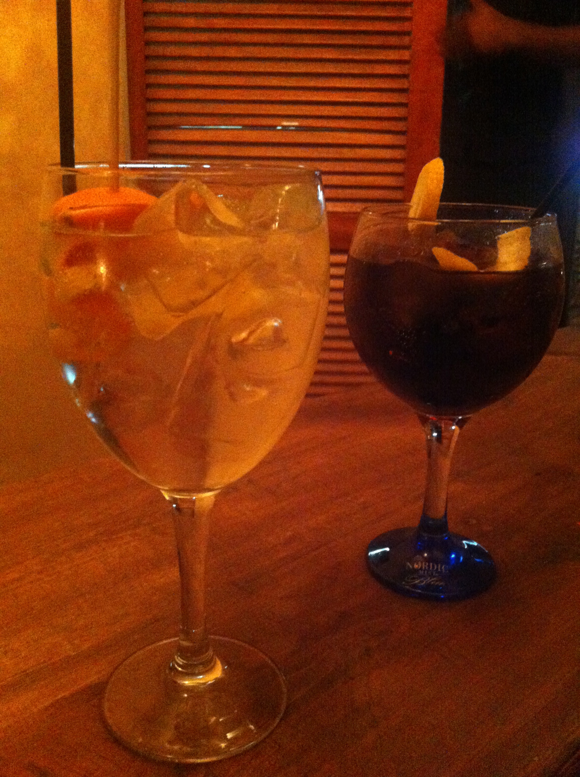 No tomamos postre, pero pedimos copa porque habíamos leído antes de ir que tiene mucha fama por cocktails como el gin-tonic de peta zeta o mojitos con sabores, etc. Así que pedimos el de peta-zeta (7€), es muy original por el crujiente, pero el sabor anaranjado le da un sabor que no me convenció mucho porque parecía un poco medicina. La otra copa, un Brugal con coca-cola (6€). Ambas servidas en copa de balón.