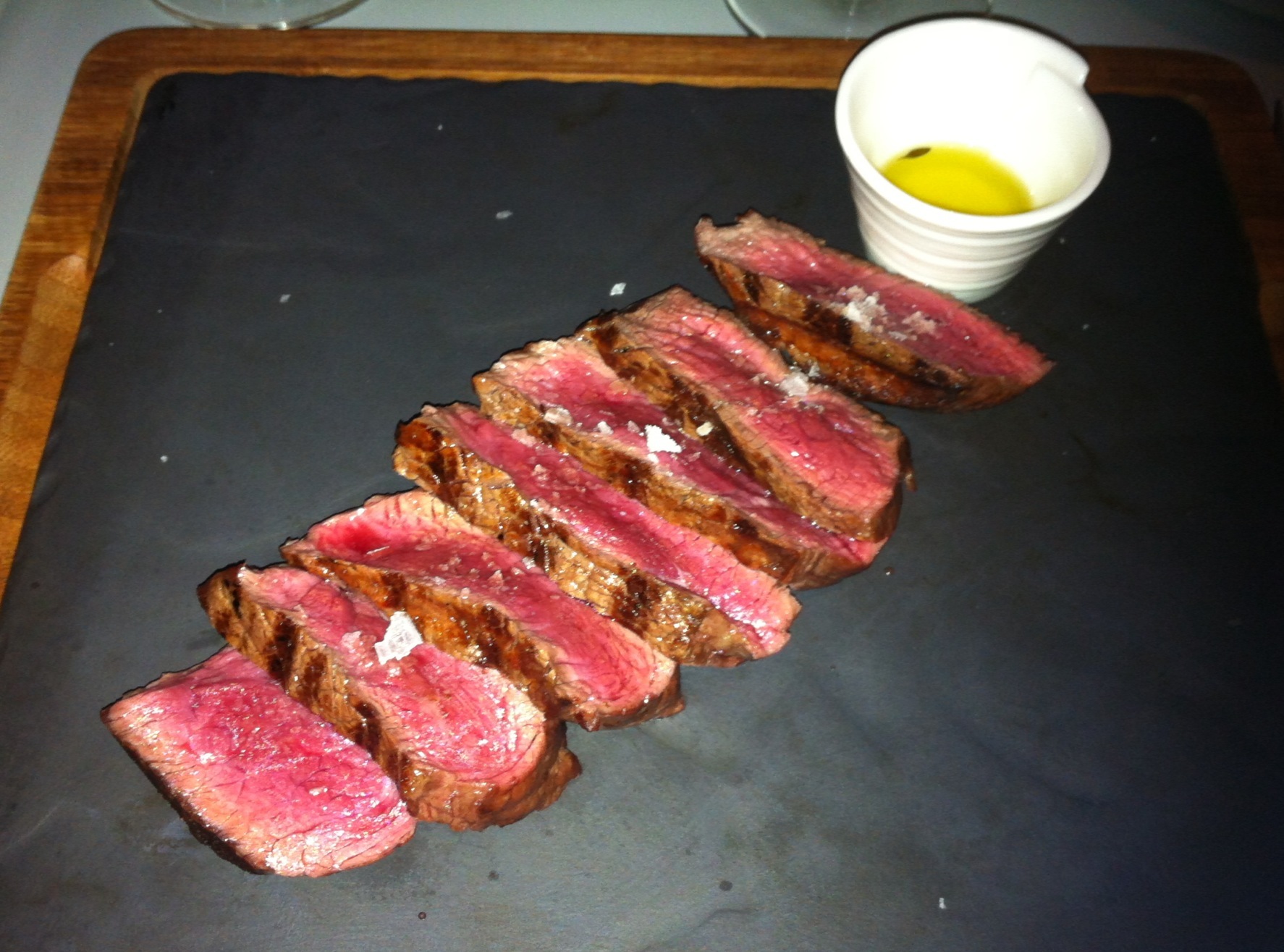 Para continuar, tomamos el solomillo de ternera (19€), viene fileteado por lo que parece más entrecott que solomillo, pero está bastante bueno.