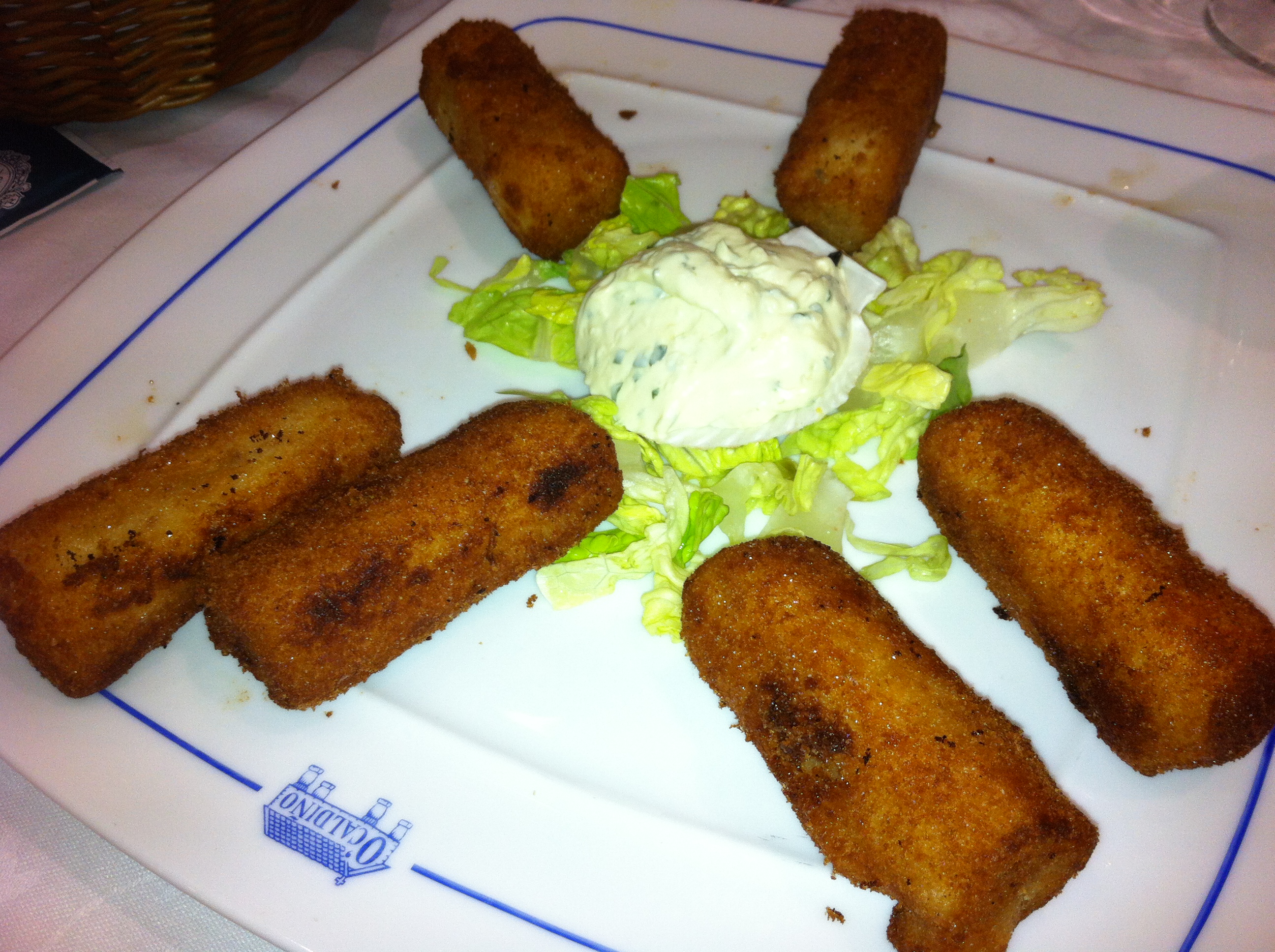 Fuimos en grupo con la familia, éramos en total 7 personas. La carta de O’Caldiño tiene todo gallego, con una variedad muy amplia de platos. Para empezar pedimos varias cosas para picar entre todos. Pedimos empanada de bacalao y de bonito. Está muy rica, con la masa no muy gorda y el relleno muy sabroso.