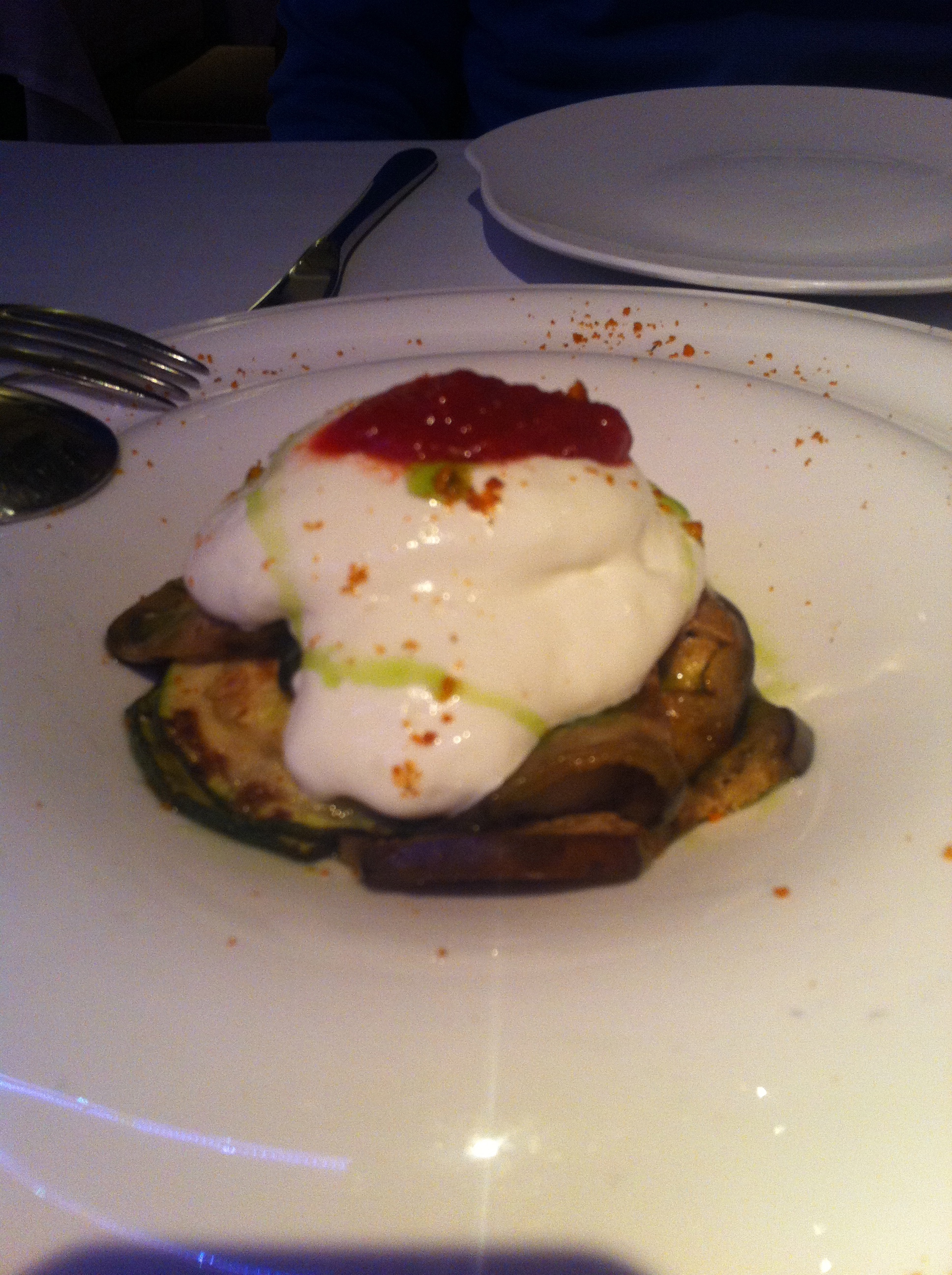 Nosotros para compartir, pedimos la lasaña de verduras a la plancha y queso fresco. Está muy buena, viene con calabacín y berenjena y el queso por encima, aunque lo pondría algo más caliente ya que viene templado.