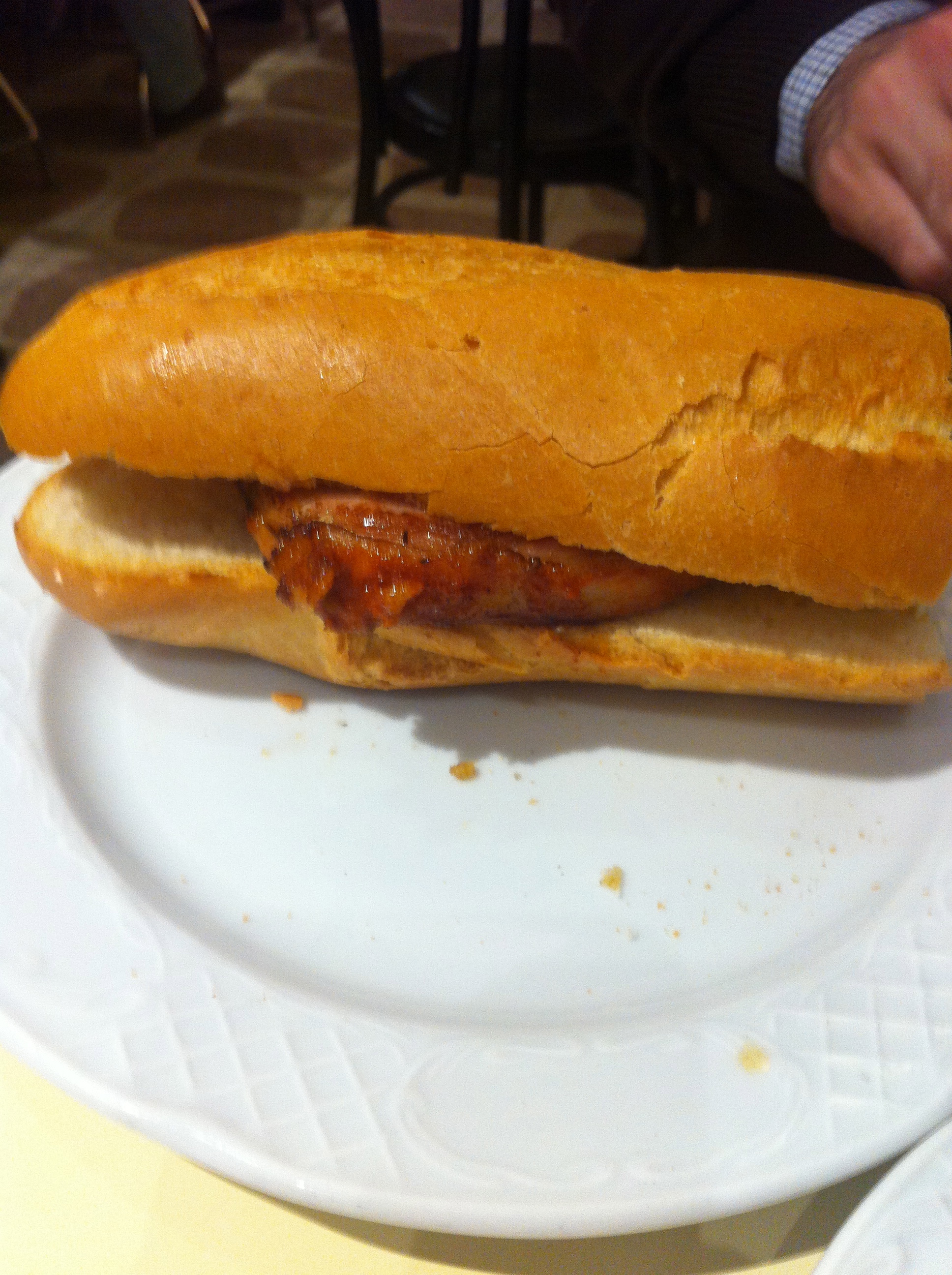 También pedimos el montado de lomo adobado (3€), que la verdad es que no merece nada la pena… Es como un bocadillo con mucho pan, que se podría tomar en cualquier bar normalito.