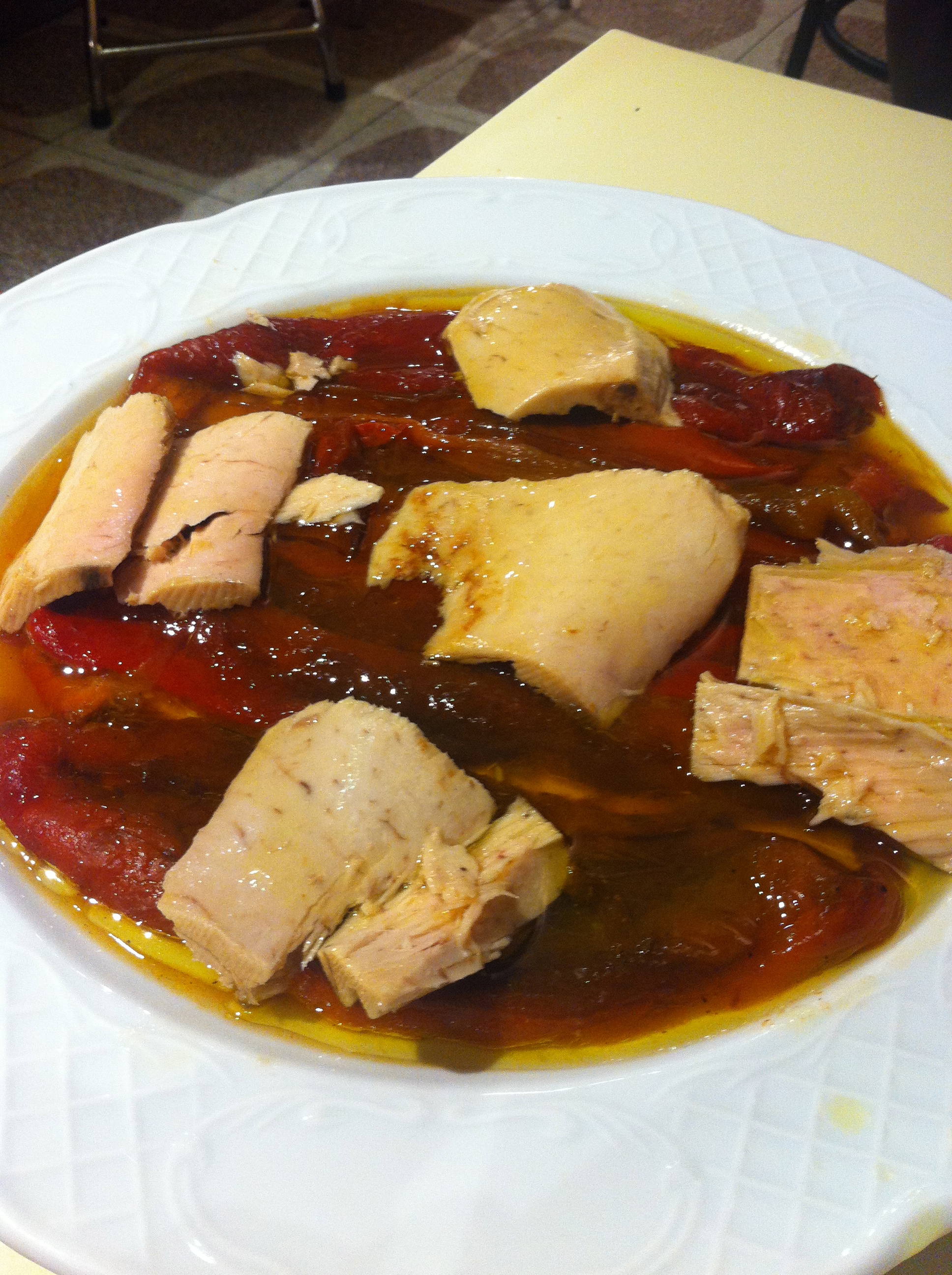 Y por último y para acompañar el resto de platos, probamos la ensalada de pimientos y ventresca (13,50€), que además casi fue lo que más nos gustó. Pimientos asados en casa, no de bote, y con buenos trozos de ventresca.
