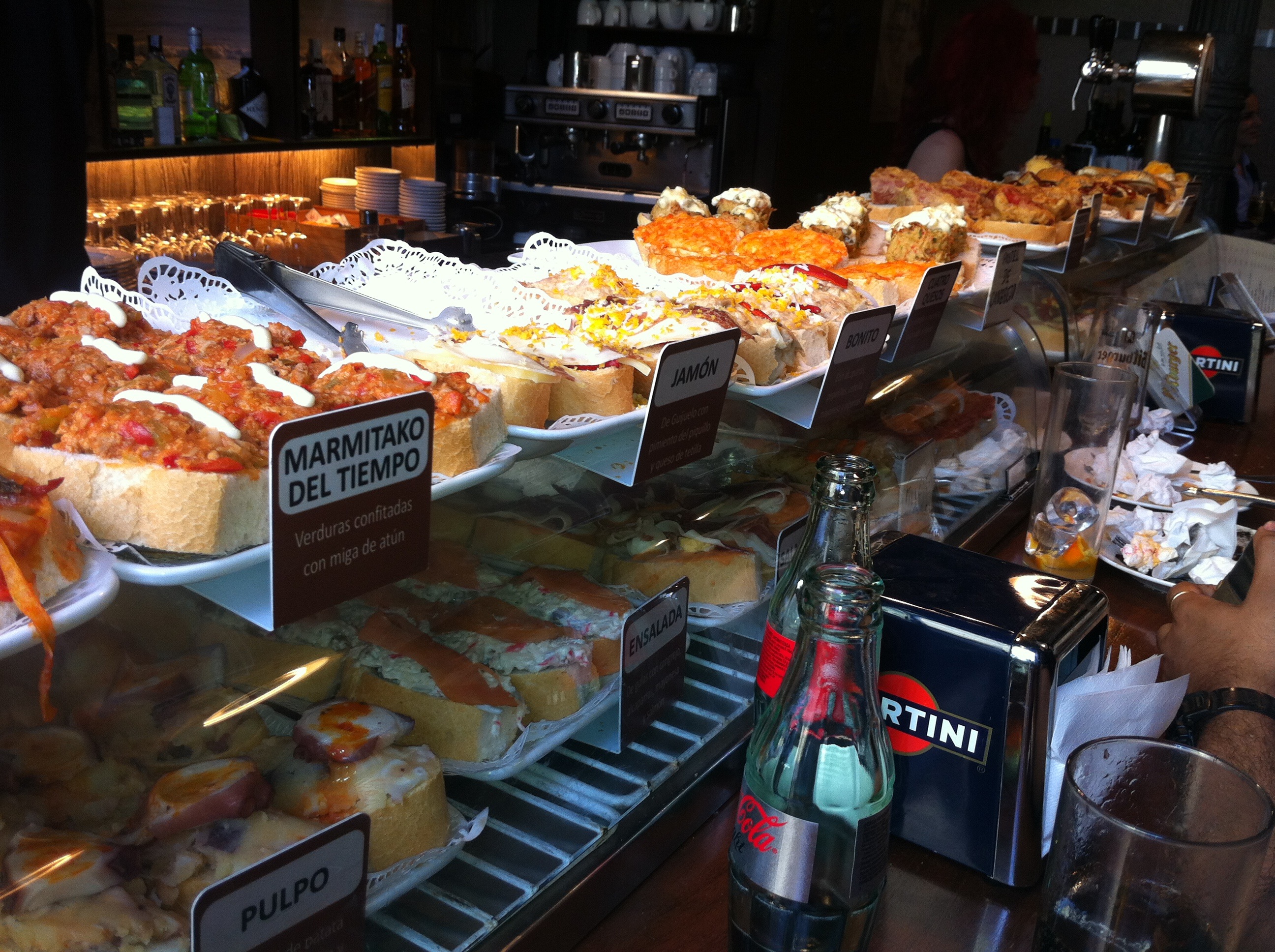 Pinchos muy apetecibles, fríos y calientes y casi todos expuestos en la barra para elegir más fácilmente.
