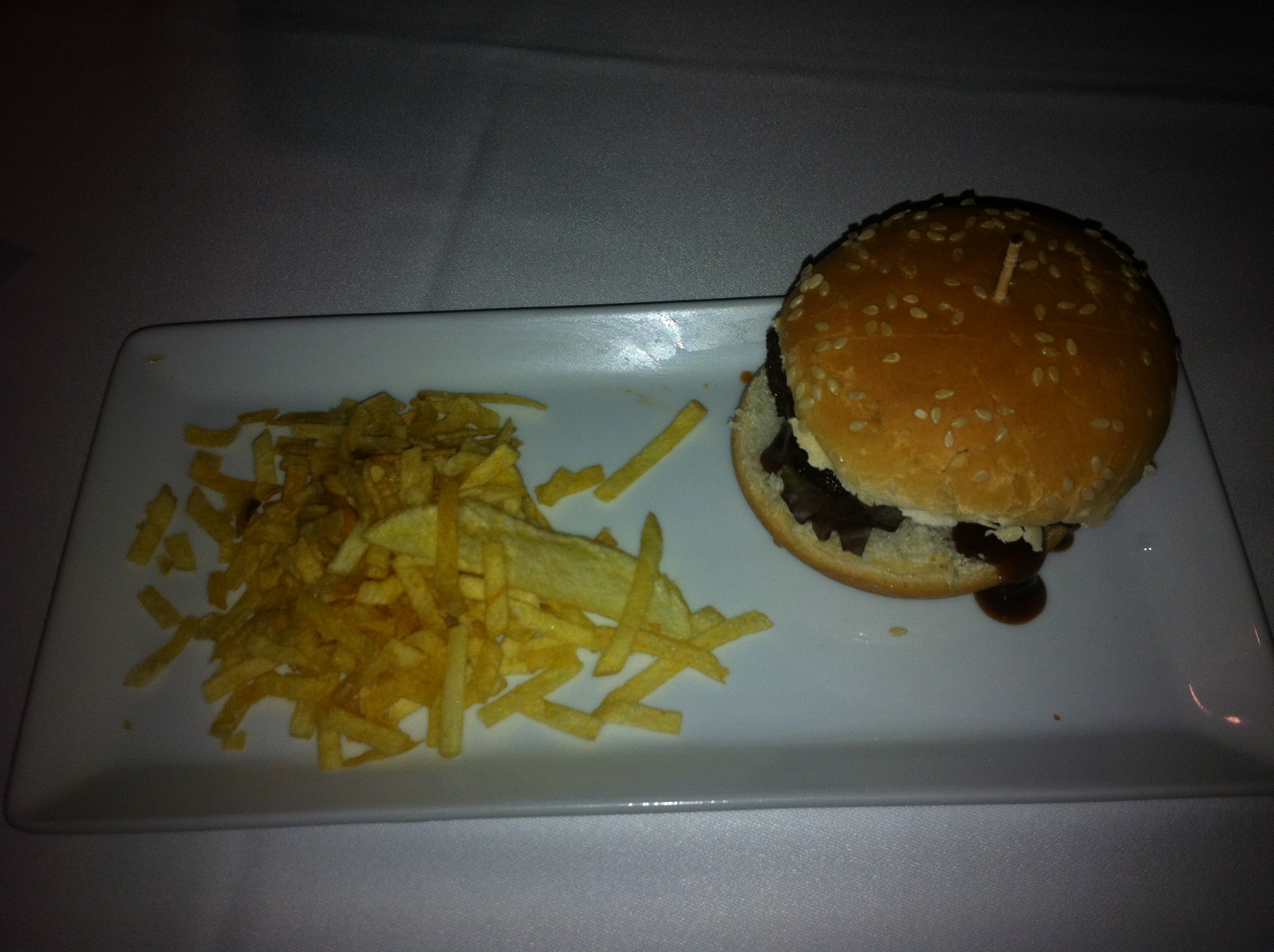 Para empezar probamos la hamburguesita (3,50€). Muy tierna y viene acompaña por patatas fritas.